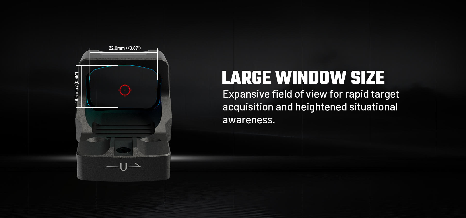 Mit seinem 22 mm x 16,5 mm großen Sichtfenster liefert das Visier ein weites Sichtfeld und optimale Übersicht, ohne Kompromisse bei der Präzision.