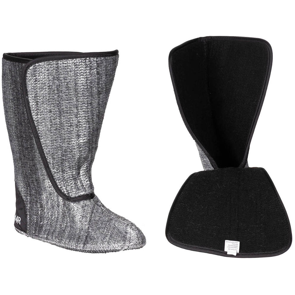 Kälteschutzstiefel mit hochgezogener, abriebfester Gummisohle. Der herausnehmbare Innenschuh ist für höchste Isolationswerte mit einer Alu-Filz-Beschichtung versehen.