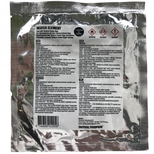 - Lassen Sie das Tactical Foodpack 15-20 Minuten in dem Heater Bag, wir empfehlen die Speisen nach 10 Minuten einmal umzurühren.