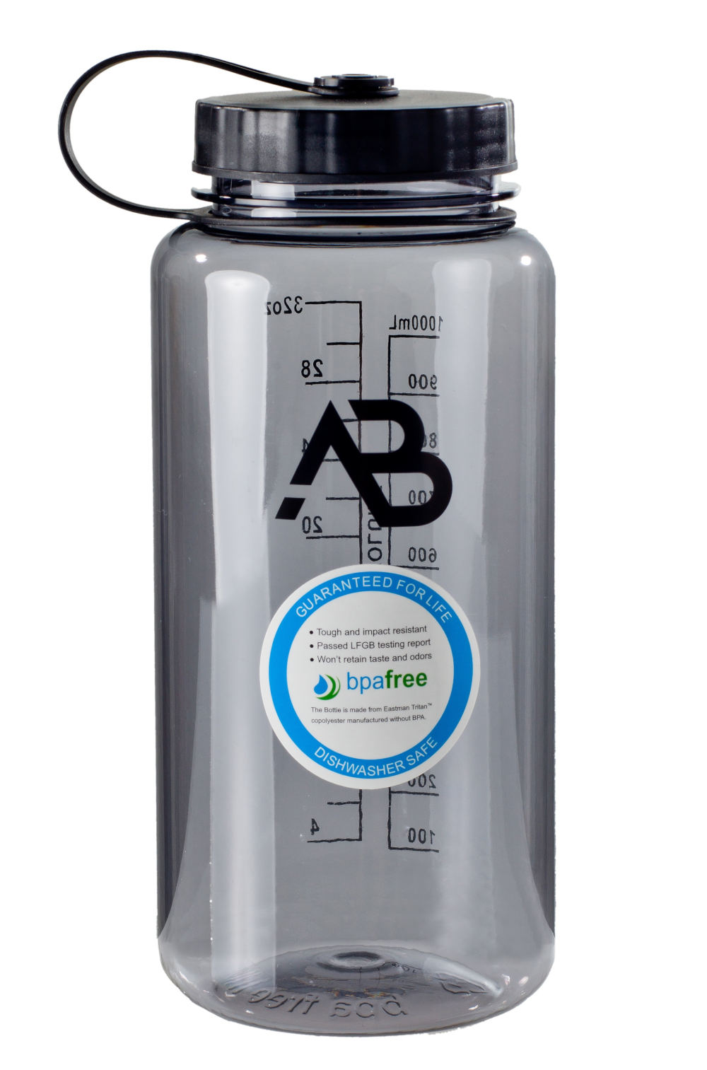 Trinkflasche aus robustem und stoßresistentem Tritan®, hellgrau, transparent, mit Schraubverschluss. BPA-frei, kein „Plastik“geruch/-geschmack. Die weite Öffnung (Durchmesser ca. 7cm) erlaubt eine einfache Reinigung. Gleichermaßen ideal für Outdooraktivitäten und Alltagsgebrauch.
