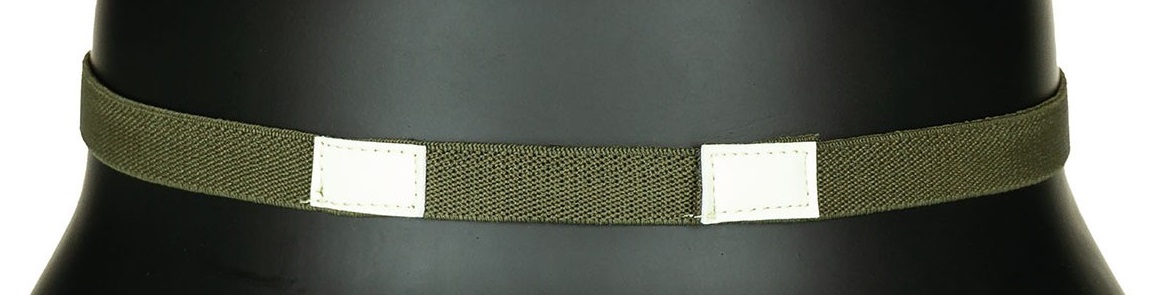 Elastisches Band mit Reflektoren, zur Befestigung von Tarnmaterial, Helmbezügen o.ä. Farbe: oliv. Marke: MFH.